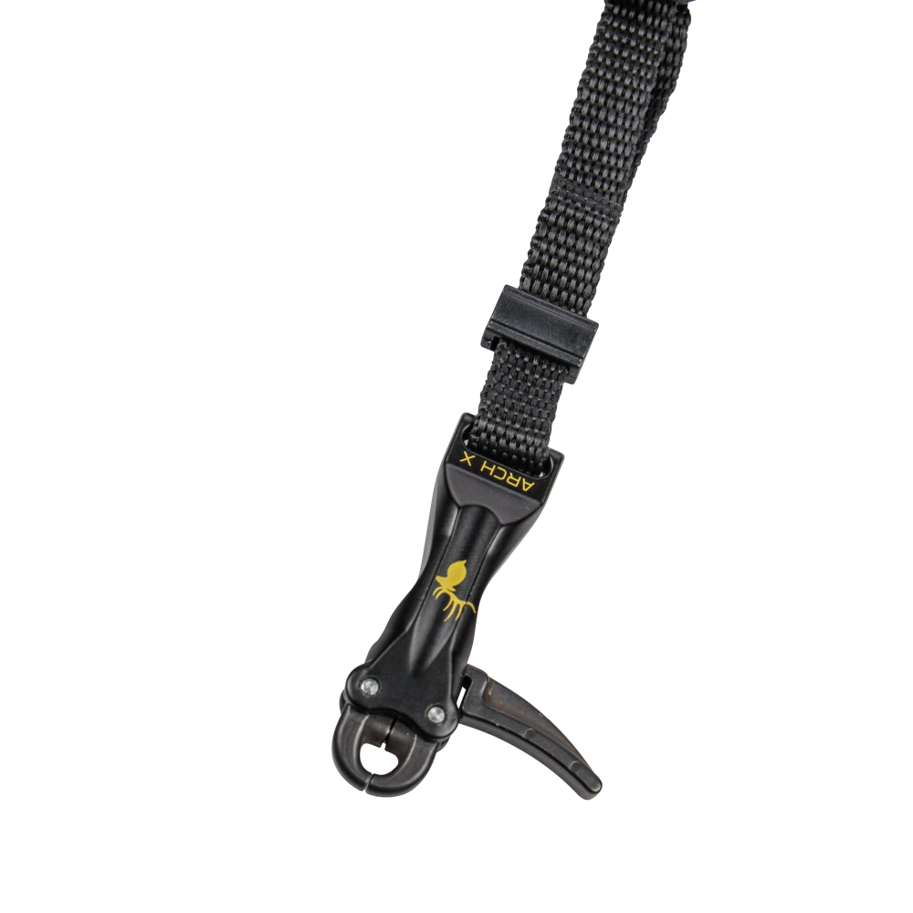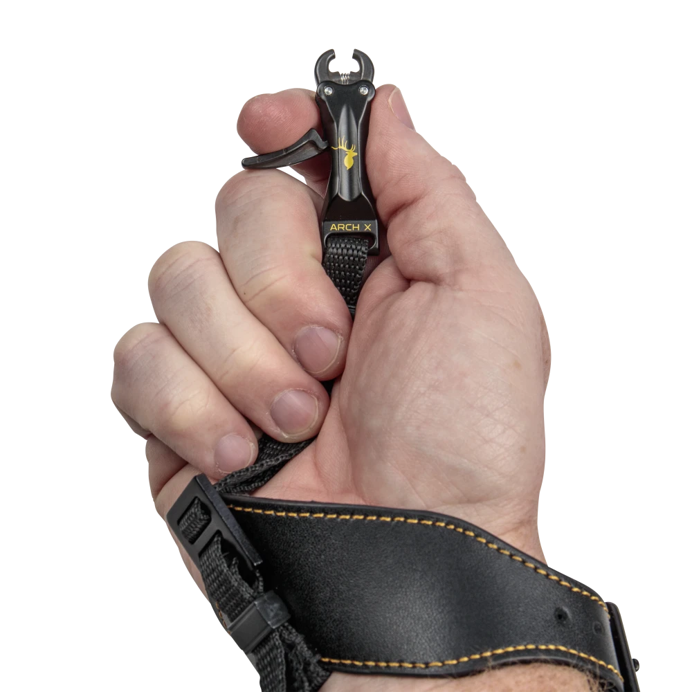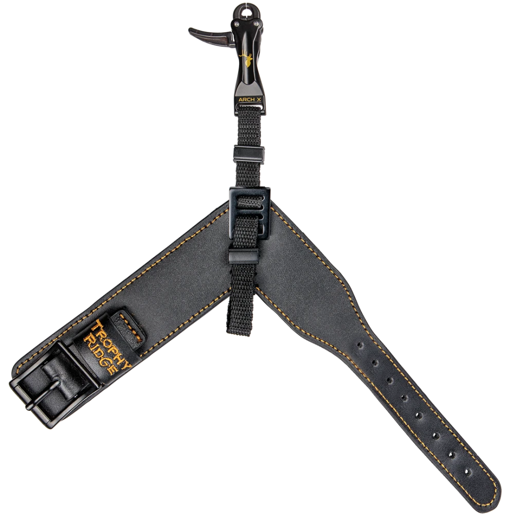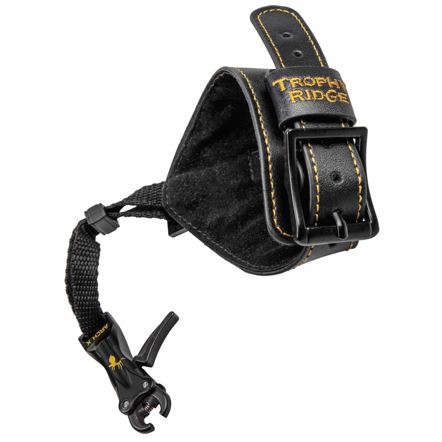 Draw back and release with confidence with the Trophy Ridge ArchX release. The interlocking jaw system and trigger travel adjustment of the ArchX trigger release provides a crisp trigger and smooth release. The length of the adjustable nylon strap was designed to fit all hand sizes from youth to adult. Its premium leather buckle strap makes it the perfect choice for bowhunters and target shooters alike. Trophy Ridge Archery, time tested and field-proven since 1960.