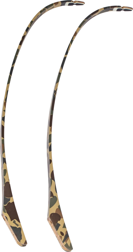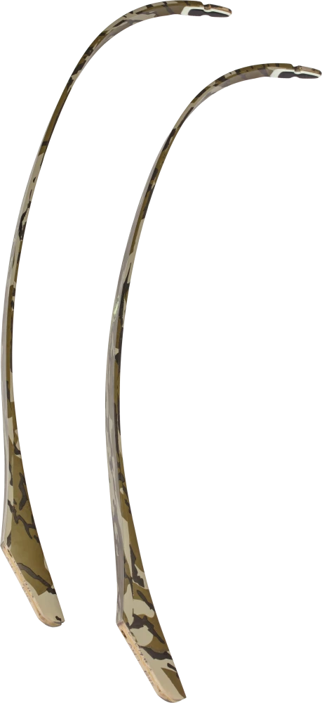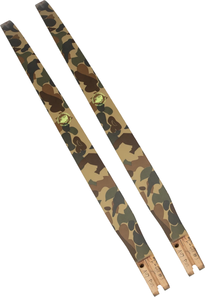 Years ahead of their time, Fred Bear’s Take Down Limbs brought the industry a new technology and superior performance. Today, these Take Down Limbs are now available in Fred Bear Camo and Mossy Oak Bottomland finishes. These Take Down Limbs are available in one length, #3 limbs. The #3 limbs will make a 60 bow on an A-Riser, a 62″ bow on an Eichler Riser, and a 64 bow with a B-Riser.