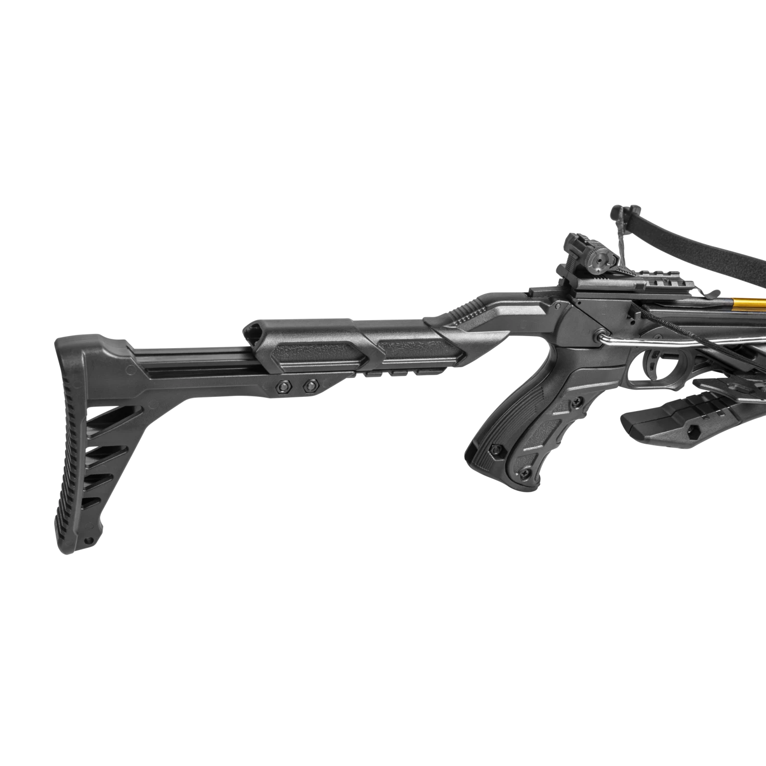 Compact, lightweight, and fun to shoot, the Bear X Desire XL is a self-cocking pistol crossbow. The stock can be adjusted up to 2.5” for comfort and increased stability. With a draw weight of 60 lbs. and a velocity of 175 FPS, this mini crossbow makes the perfect shooting companion for backyard target practice.