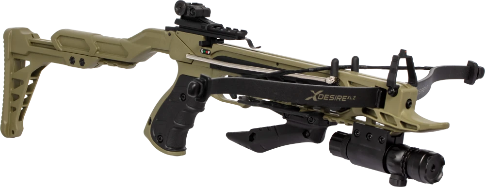 Compact, accurate, and fun to shoot, the Desire XLZ mini crossbow delivers big performance in a small package. It’s outfitted with a break barrel cocking device for fast, effortless loading and an adjustable stock that extends up to 2.5” to enhance comfort and stability. Featuring a premium laser sight alongside open sights, it delivers pinpoint accuracy for confident, on target shooting. The 60-lb. draw weight launches bolts at speeds up to 175 FPS, and with three premium bolts included, the Desire XLZ is perfect for backyard fun, target practice, and sharpening your skills with confidence.