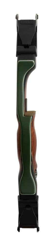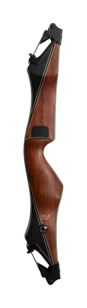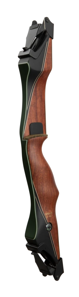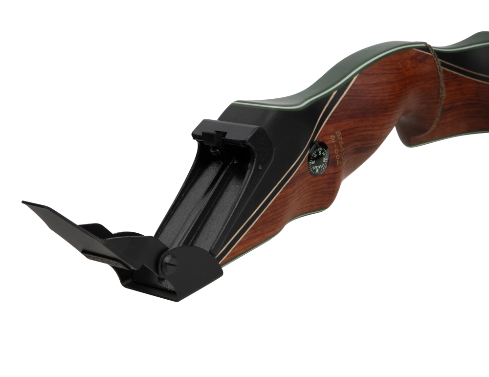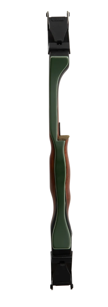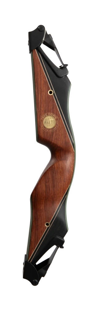 First introduced by Fred Bear more than 50 years ago, the Bear Take Down was a modern and innovative design that revolutionized the archery industry. Available in both an A and B length riser, this iconic bow features the signature 1969 heal horn style grip to allow for a deep feel and consistent grip. This takedown bow is available in four timeless wood finishes: black maple with a phenolic black stripe, bubinga and phenolic with an inlaid phenolic black stripe, bubinga with green glass and a phenolic stripe, and bubinga with a phenolic front and sleek green glass.