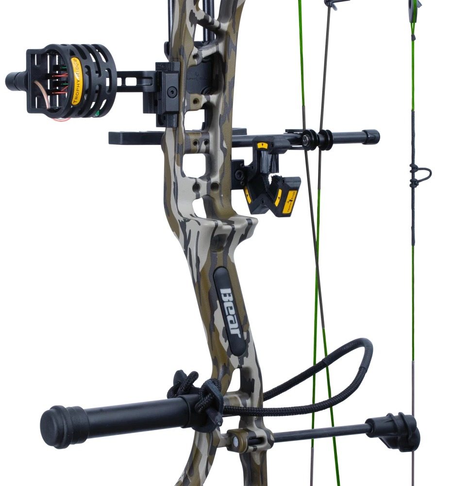 Experience the pinnacle of archery craftsmanship with the Gamekeeper Compound Bow, a collaboration between Bear Archery and Mossy Oak® GameKeepers® that seamlessly blends tradition and innovation. Born from the legacy of Fred Bear’s venerable institution, Bear Archery, and inspired by the conservation ethos of Mossy Oak® GameKeepers, this bow embodies the timeless values of stewardship and respect for nature. Delivering arrows at a blazing 330 feet per second, with a forgiving 6.5-inch brace height and a compact 30-inch axle-to-axle length, it offers unmatched speed and precision. Customizable to your preferences with draw weights ranging from 45 to 70 pounds and a versatile draw length of 27 to 32 inches, it ensures a perfect fit for every hunter. With an 80% let-off for smooth, effortless shots, the Gamekeeper Compound Bow is not just a tool—it’s a symbol of commitment to conservation, heritage, and the timeless traditions of archery. Plus, it comes with Trophy Ridge’s ultimate Ready-To-Hunt package, featuring an IMS® V-Biscuit rest, Picatinny-mounted 4 pin sight, Mossy Oak ® Bottomlands 5 arrow quiver, stabilizer, peep sight, and wrist sling!