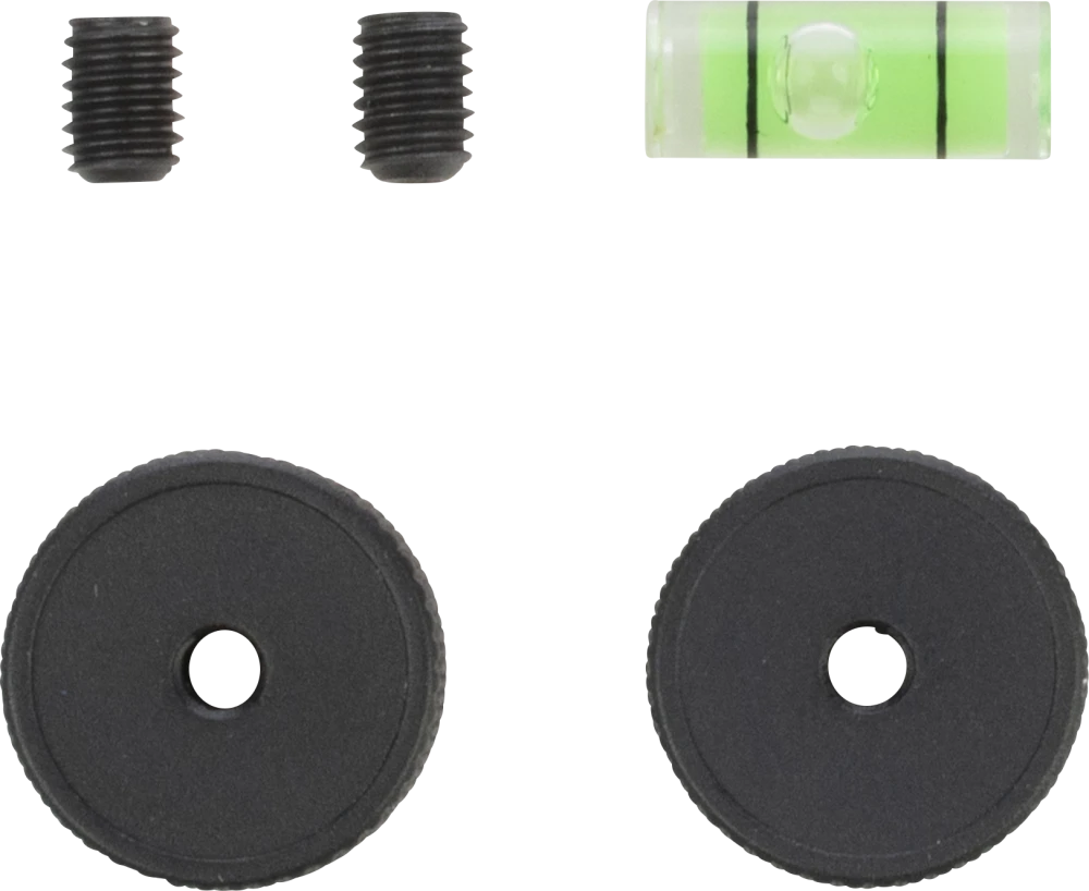 Includes one 6mm x 15mm level, two set screws for micro knob, and two 10-32 x .25 set screw cup points