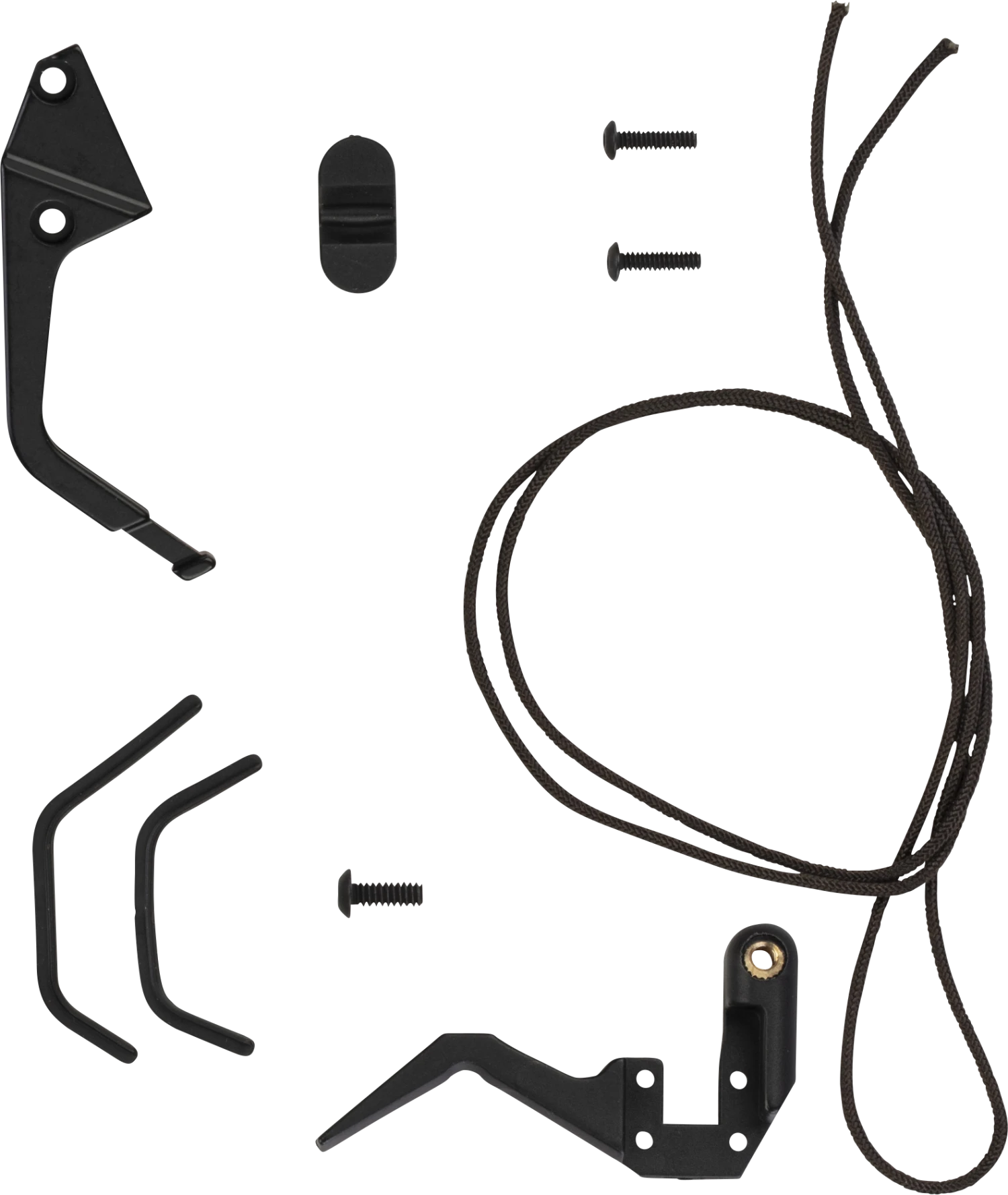 Includes one rest arm, one screw that holds the cord, one containment arm, two containment arm screws, one rubber the arm rests on, one cord, one arrow holder, one limb pad, and one felt for the arm