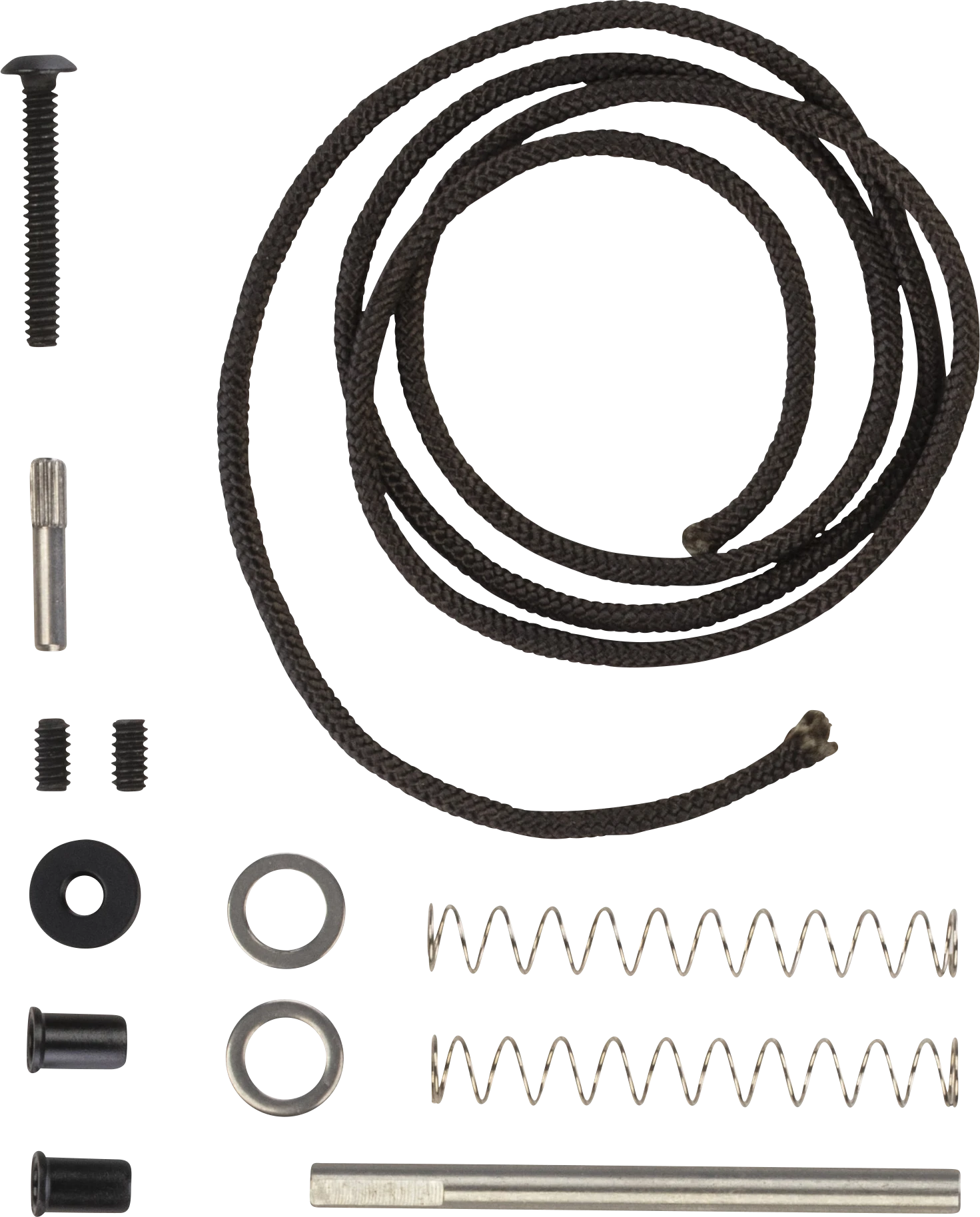 Includes one cord, two drop away rest rope bushings, one screw that holds the cover, two stainless washers, two springs, one shaft for the springs, two set screws for the shaft, one shaft for the roller, and one roller