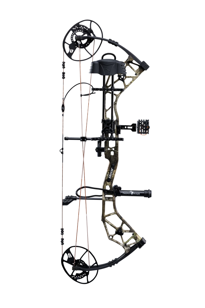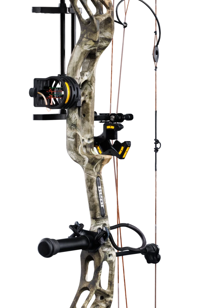 The new Paradigm RTH hunting bow from Bear Archery sets a whole new standard for ready to hunt bows. Featuring a new integrated Fatal 4 sight and the Integrate Mounting System Whisker Biscuit V arrow rest from Trophy Ridge; there has never been a more streamlined set-up from the factory. This hunting bow is powered by the ultra-efficient DHC cam system capable of speeds up to 333fps, while being adjustable from 27″-32″ of draw length. To help you make every shot count, the Paradigm measures 33 inches axle-to-axle and sports a brace height of 6.5 inches to maximize forgiveness. New cable guard roller system and in riser dampeners give this bow high end features that are unmatched in its price range. Trophy Ridge Package includes: integrated 4-pin sight, IMS Whisker Biscuit V, 5-Spot quiver, stabilizer, peep sight, and D-loop.