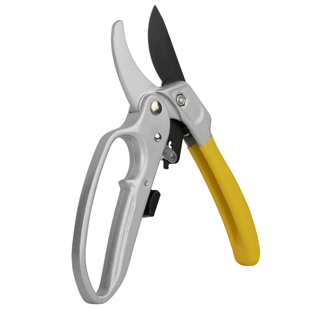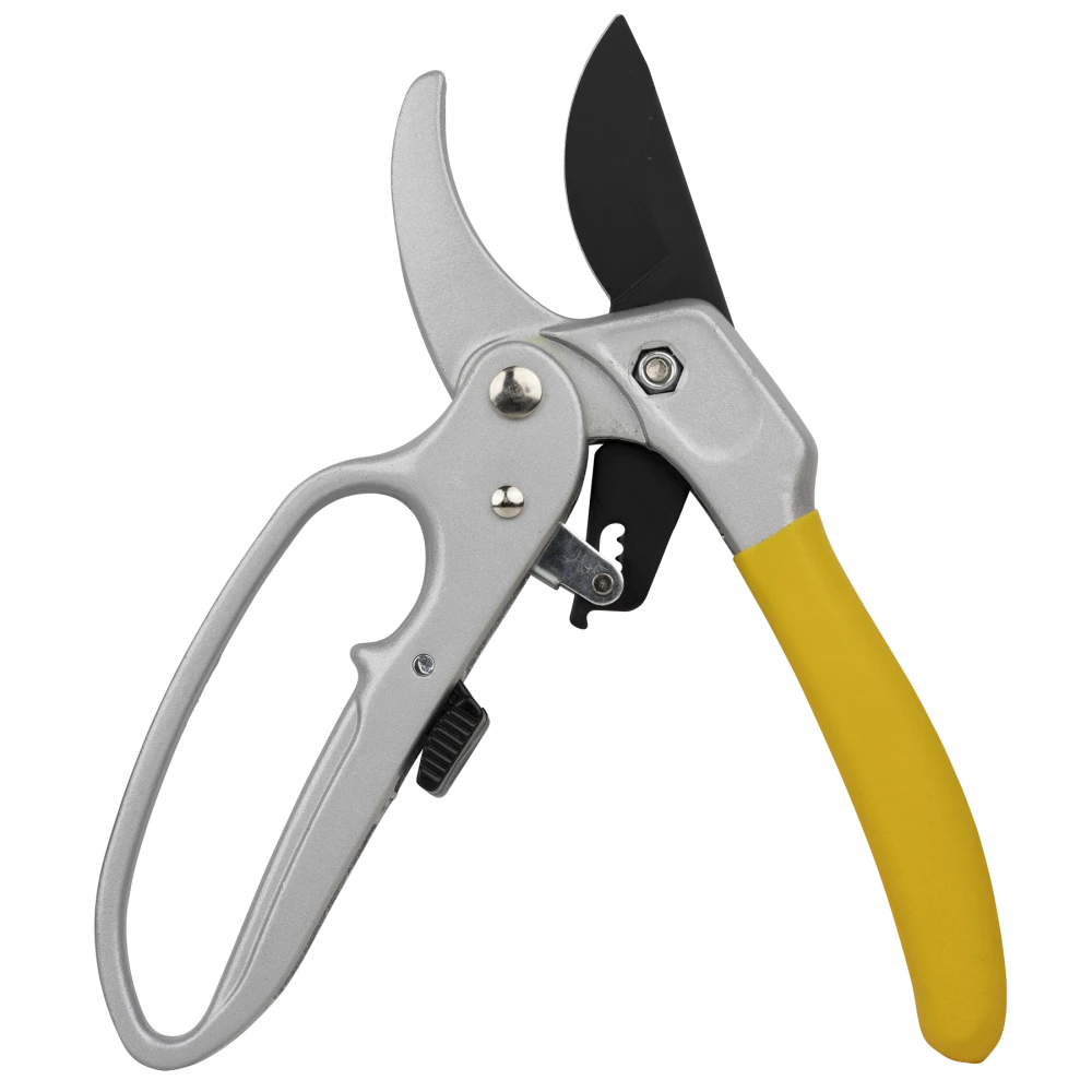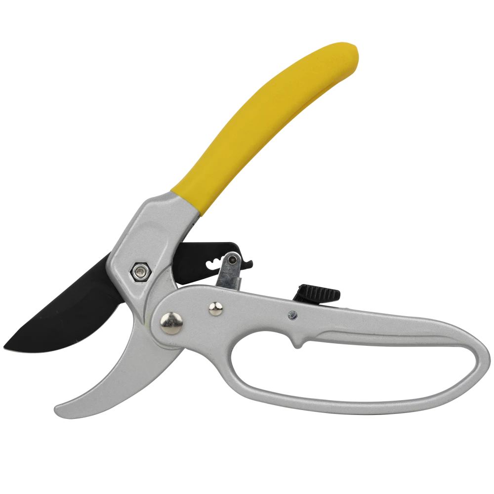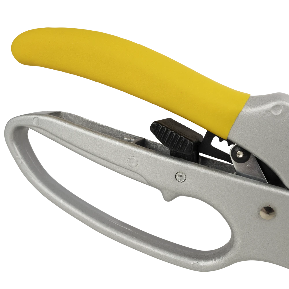 Quick snip and ditch any interference from your blind or tree stand with the all-new Trophy Ridge Ratcheting Pruner. This compact and ultra tough set of pruners let you take control of the flora around your hunting spot. The Trophy Ridge Ratcheting Pruners are a manageable 8″ in length with a comfortable and adequate coated aluminum grip that prevents twisting or slipping in your hand. The pruners have a safety locking mechanism for secure storage and transport in and out of the woods. This new hunting hand tool has a 3/4 inch cutting diameter and high carbon steel, non-stick blades for ultimate durability.