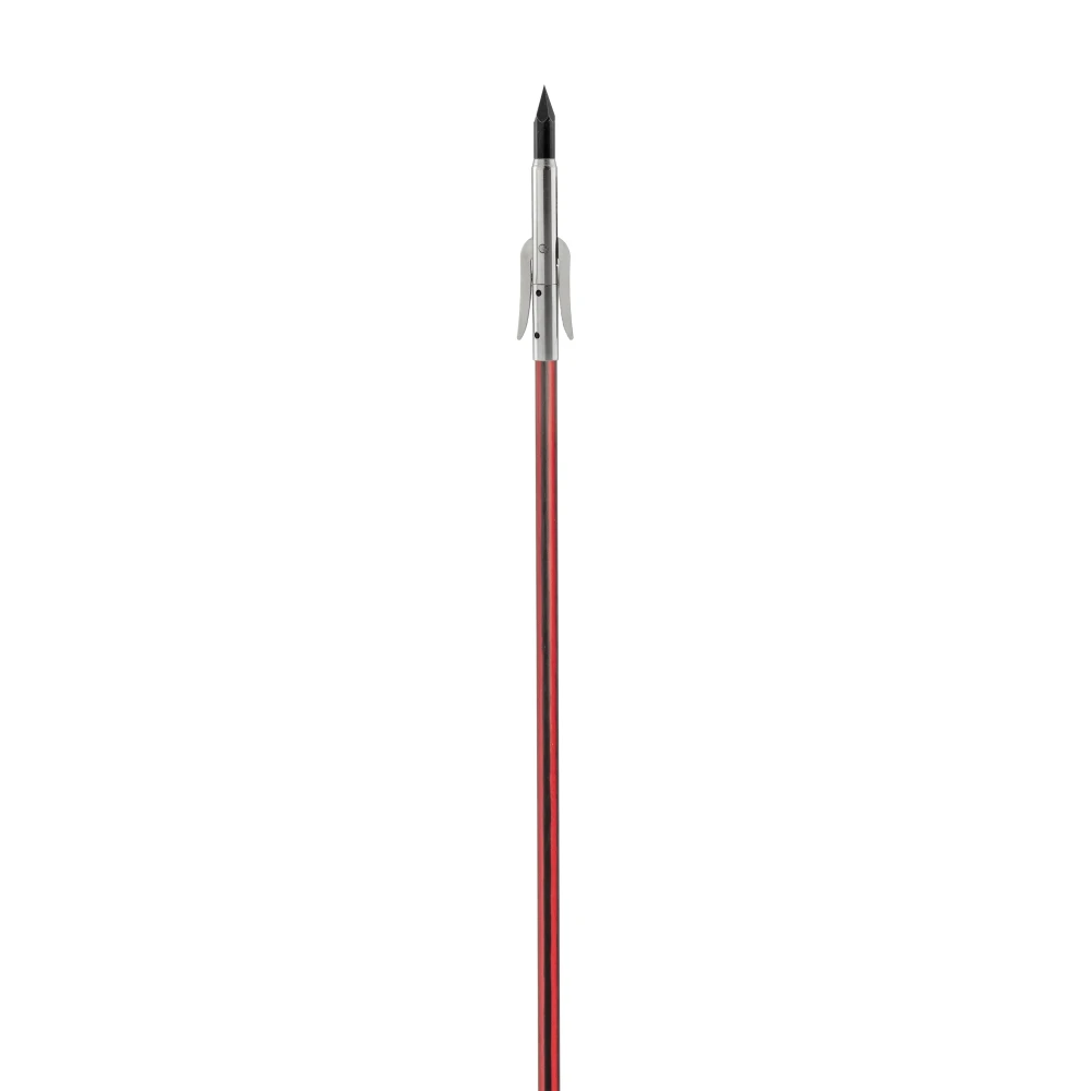 The Cajun Bowfishing Fiberglass and Carbon Infused Bowfishing Arrow with Sting A Ree Tournament Reversible Point features an improved shaft design made with a fusion of black carbon-fiber and red fiberglass. The Sting-A-Ree point is the original reversible bowfishing point, which was patented in 1963. This point allows for instant fish removal without touching the fish and penetrates deeply and grabs tight.