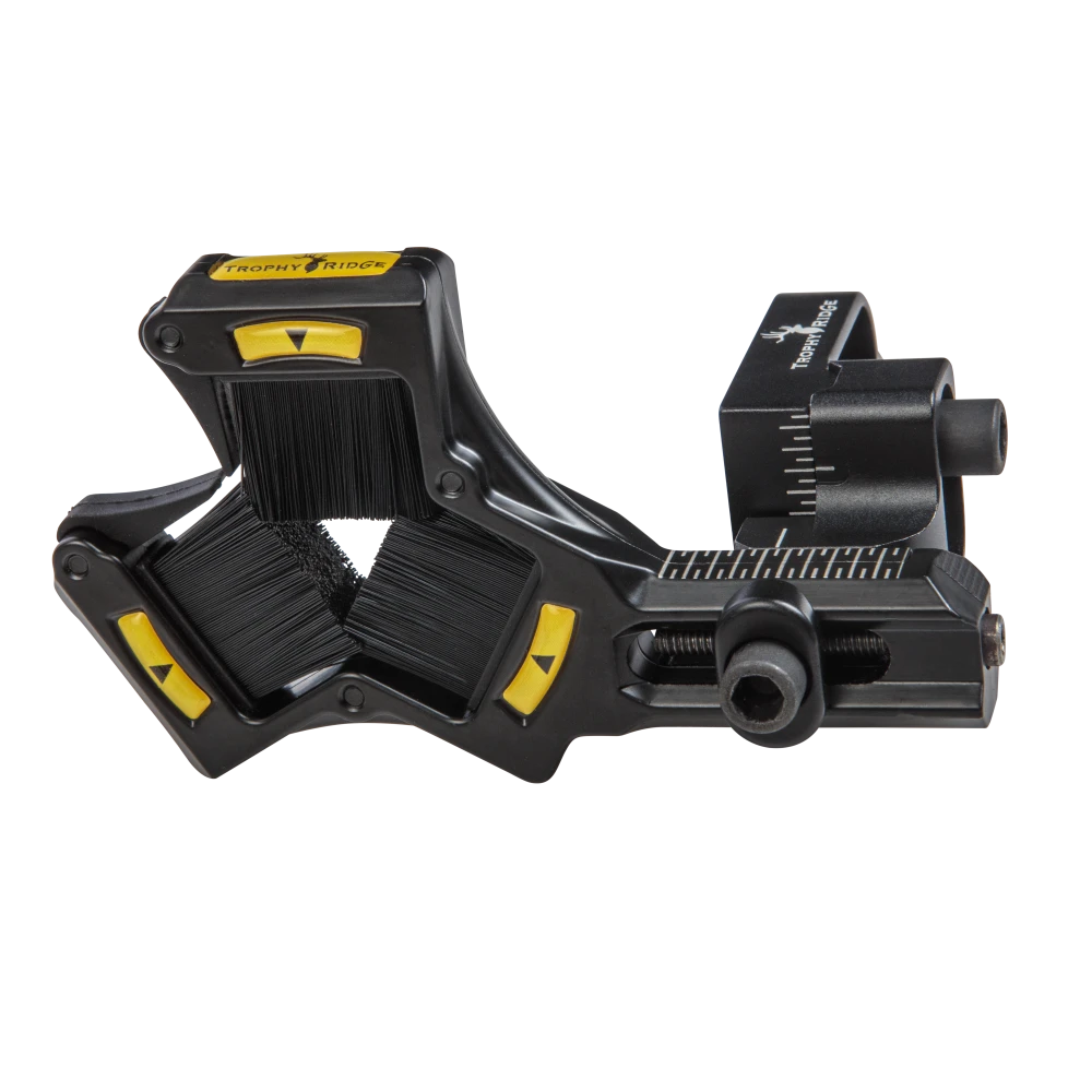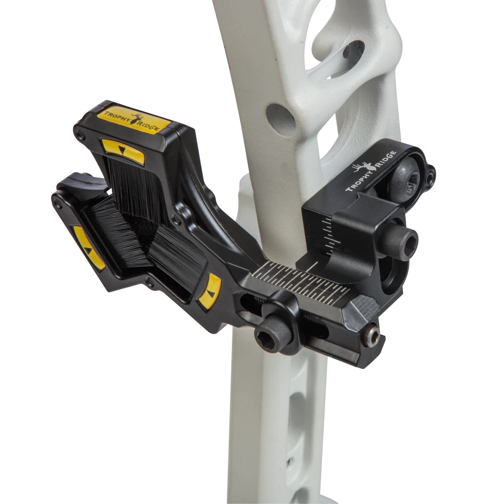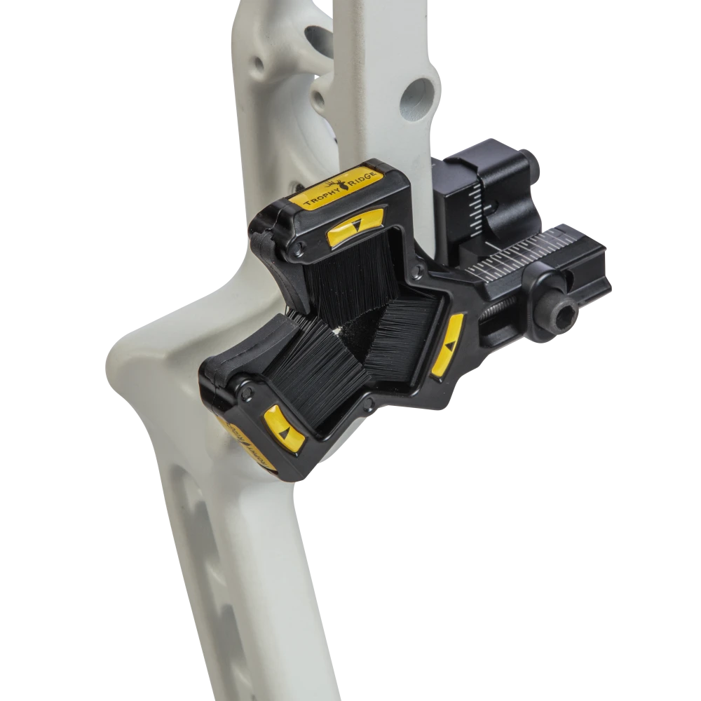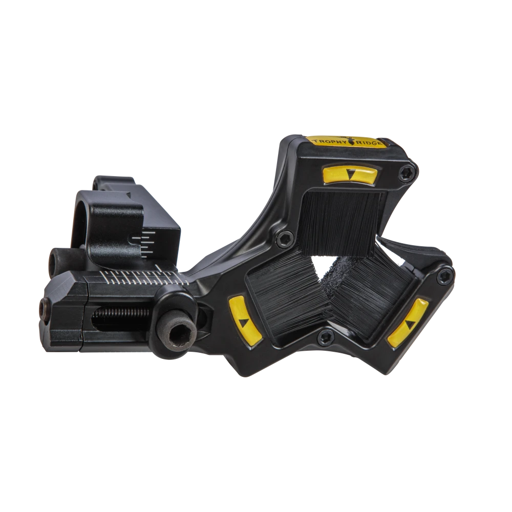 Maker of the world’s most-popular arrow rest, the original Whisker Biscuit; Trophy Ridge introduces the Whisker Biscuit V Max. The innovative V-shaped design naturally centers the arrow using only two points of contact, eliminating side-to-side arrow movement, resulting in consistent arrow trajectory shot after shot. The Whisker Biscuit V Max’s perpendicular bristles reduce vane drag and allow the arrow to slice through the bristles with ease, maintaining velocity with every shot. This incredibly accurate and consistent arrow rest makes tuning a breeze with its advanced tool-less micro windage and elevation adjustments and convenient laser-engraved reference marks on the aluminum housing.